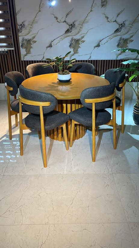 ست ناهارخوری ۴ نفره مدرن مینیمال - میز گرد و صندلی‌های چوبی با قابلیت رنگ‌بندی