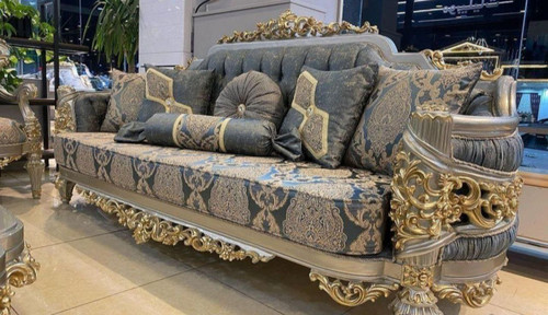 مبلمان استیل گلایول (مدل ۹ نفره) - تمام چوب با پارچه شانل و دیاموند