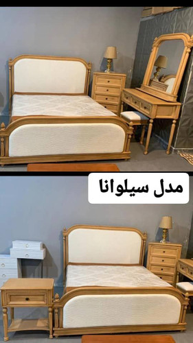 سرویس خواب کلاسیک مدل سیلوانا - تمام چوب و MDF با آینه قدی و رنگ چوب طبیعی